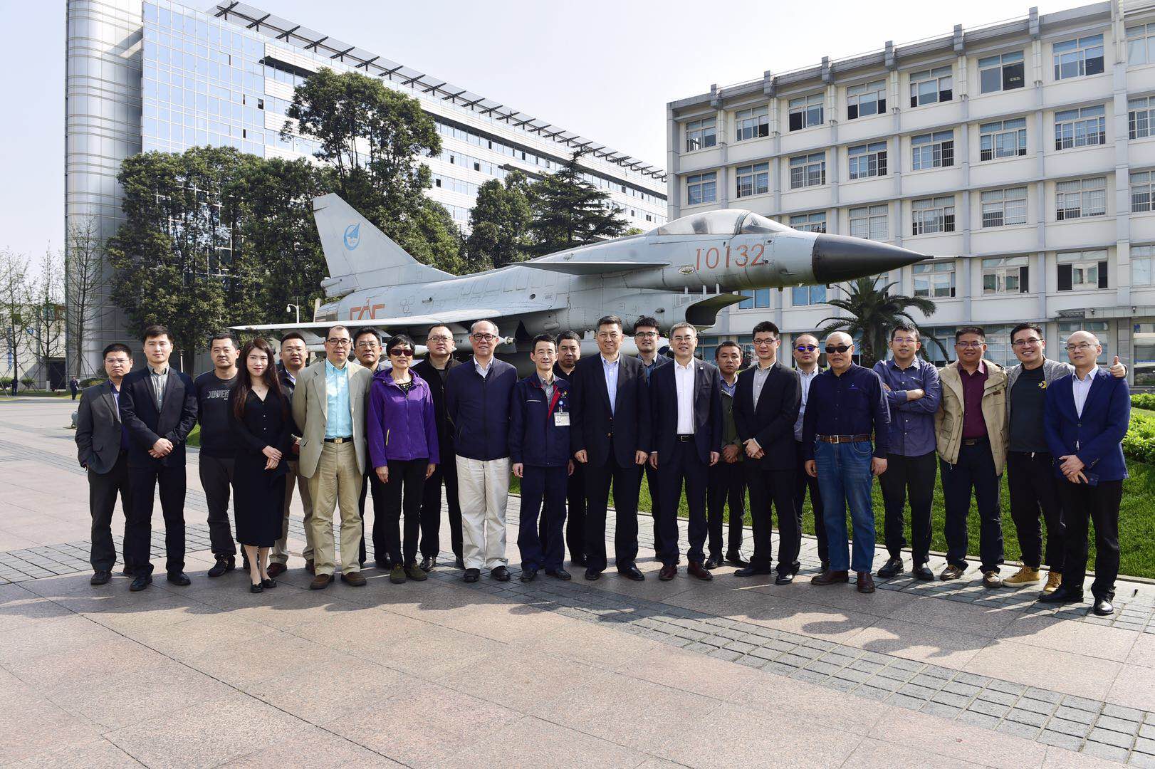 我司總經理陳梓煜參加中國通航大賽線下活動——走進航空工業成飛、中航無人機 代表們與成飛領導在J-10戰鷹前合影 一輪紅日當空,一掃蜀地之淫雨霏霏。2019年3月29日,中國通用航空創新創業大賽(以下簡稱“大賽